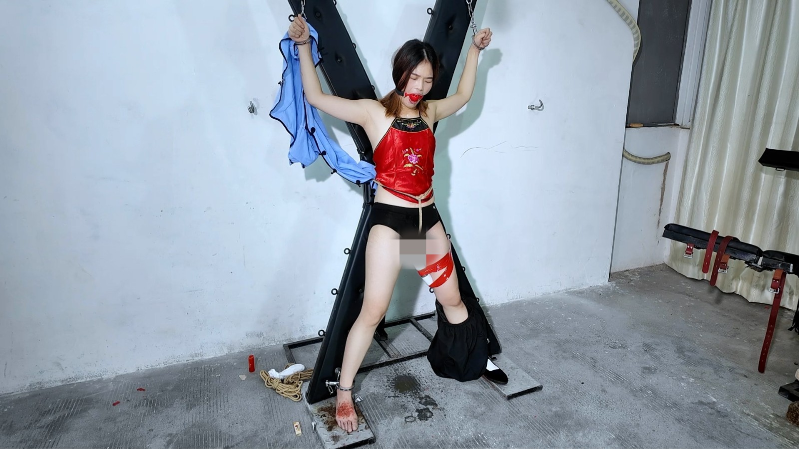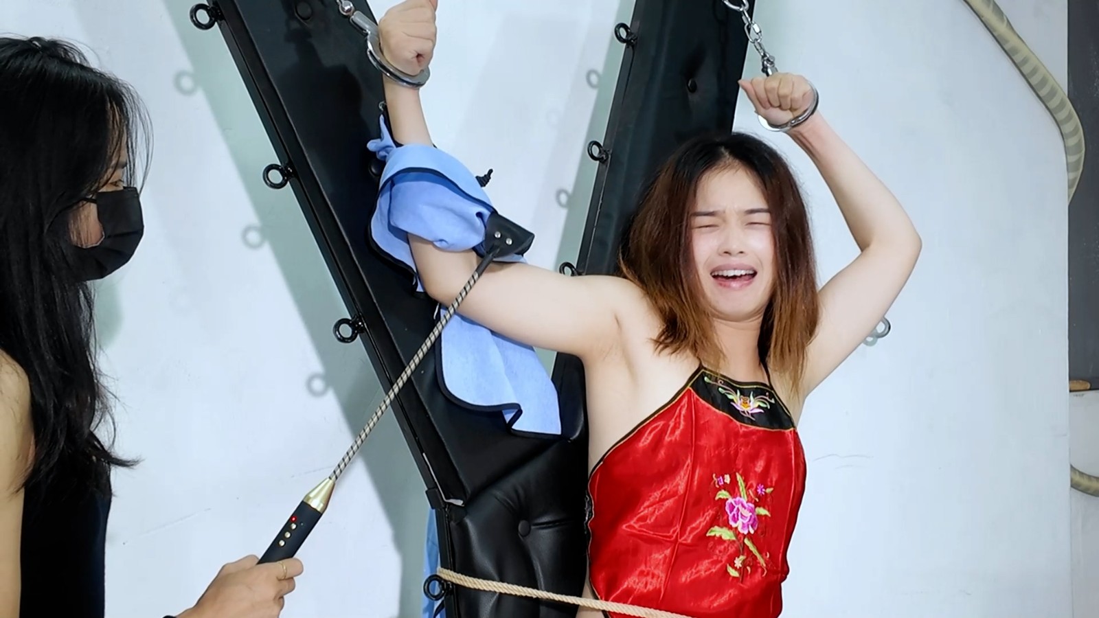 定拍转公映!卧底的女学生被抓X型架狠狠鞭打审讯!扒衣漏出红肚兜棒棒强震羞辱强G失禁!疯狂挠痒电击腋下折磨逼供!脚上滴蜡疼的嗷嗷叫!