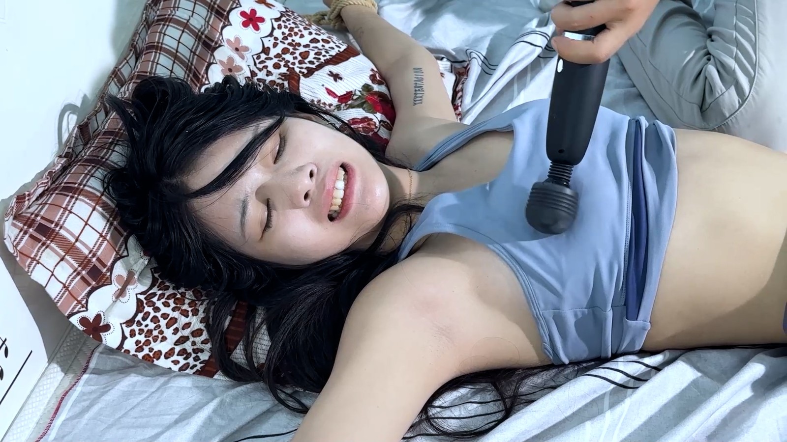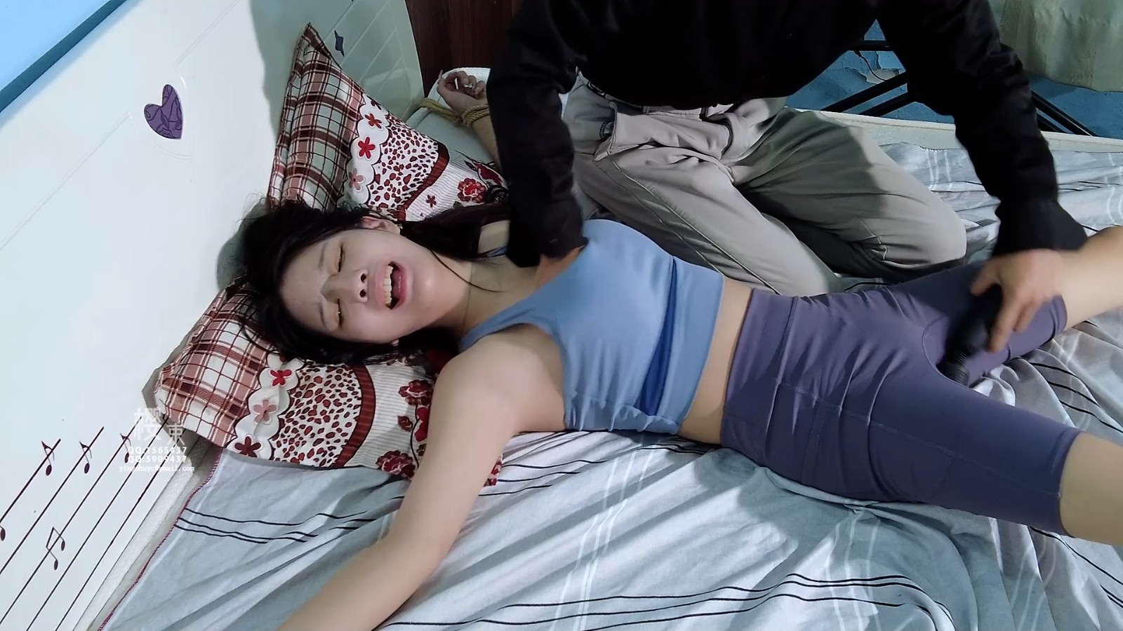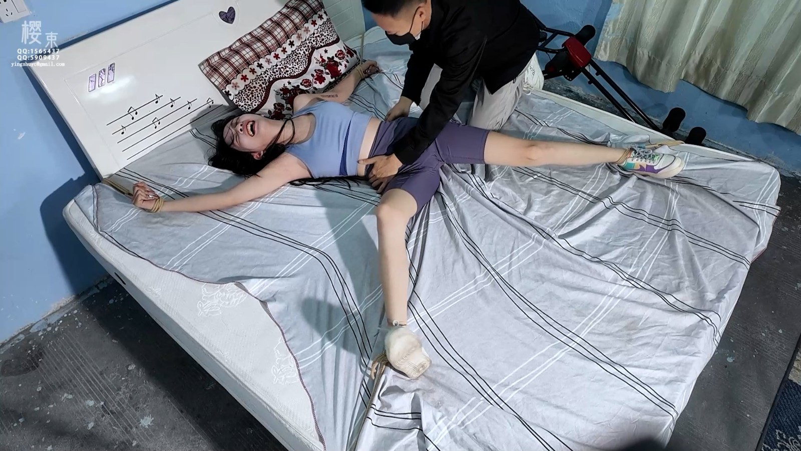 定拍转公映!因影片版权为定拍用户所有只上部分精彩片段!热爱健身的女博主在家健身被邪恶歹徒入室抢劫起了色心将捂晕大字捆绑在床上手伸进她的衣服里揉捏玩弄对她上下其手!见她醒来反抗激烈就给她全身挠了个遍怕痒的她只能不停求饶挣扎直至脱力!歹徒脱下她的鞋强迫她闻!棒棒刺激呻吟持续G潮!